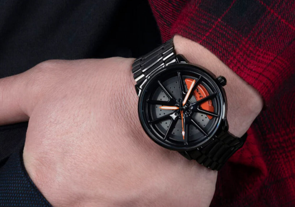 Wir haben zwei verschiedene Arten von Uhren: sich drehende und nicht drehende Uhren. Nicht jedes Modell ist in beidem erhältlich. Die sich nicht drehende Uhr ist genau wie Ihre herkömmliche Uhr. Einzigartig ist die Spinnvariante. Wenn Sie Ihr Handgelenk drehen, dreht sich das Rad im Zifferblatt frei. Dies ahmt den Effekt eines fahrenden Autos nach!
