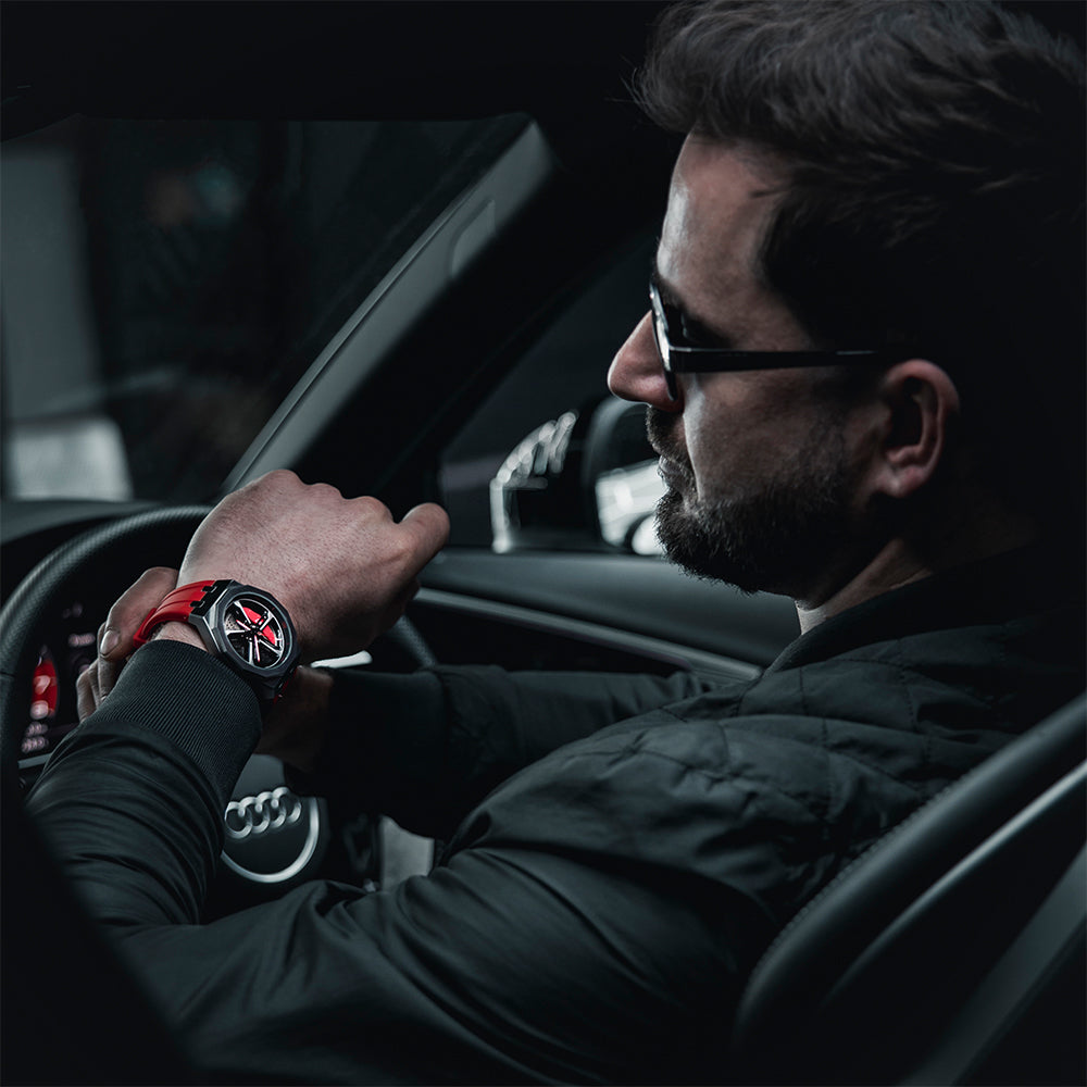 Vielseitig und stilvoll, unsere autoinspirierten Uhren wechseln mühelos zwischen Arbeit und Partys und sorgen dafür, dass Sie überall auffallen.