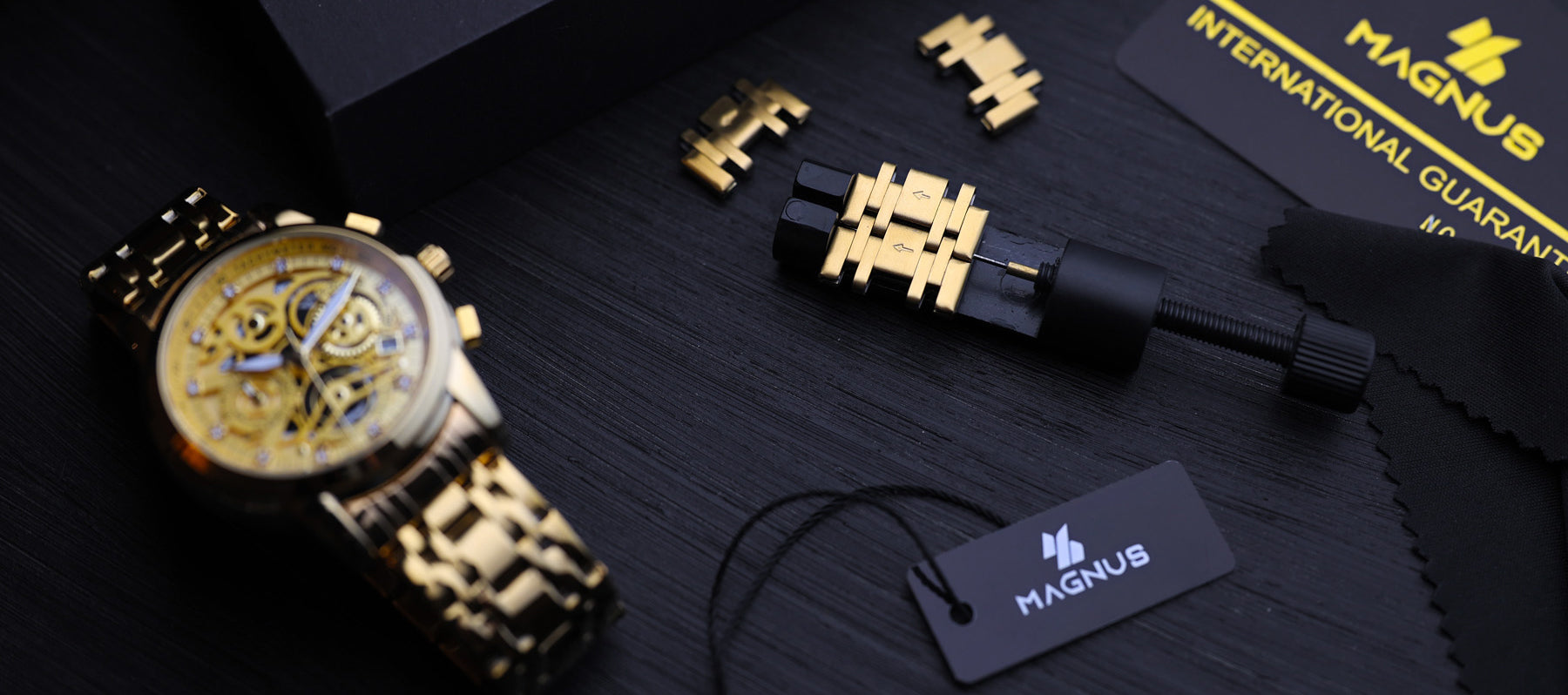Haga su pedido ahora para asegurar su reloj oficial de la marca Magnus, uno que se adapta a cualquier muñeca.